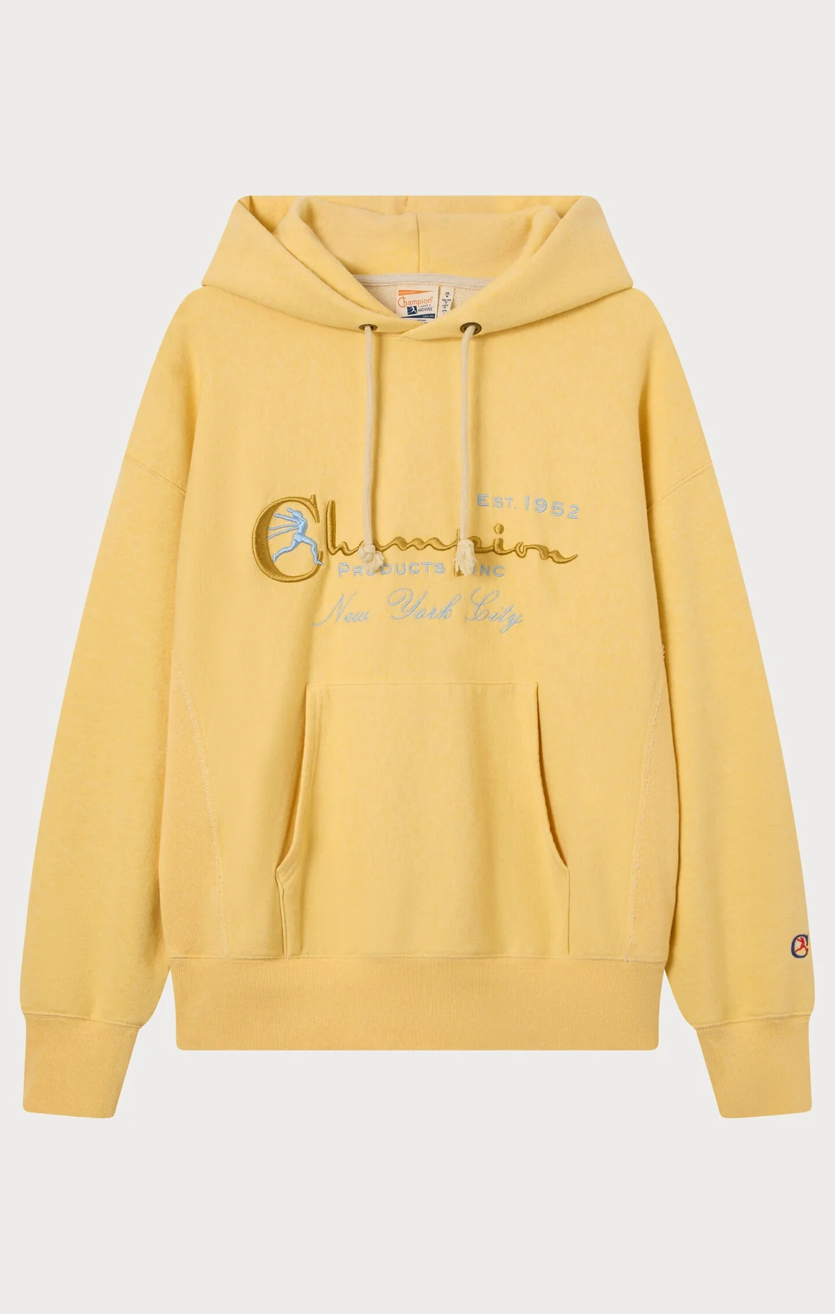 The channels a retro athletic aesthetic with a modern, easygoing fit. Crafted from soft cotton-blend fleece, this hoodie features a washed yellow tone that feels like a time-tested favorite right out of the box.