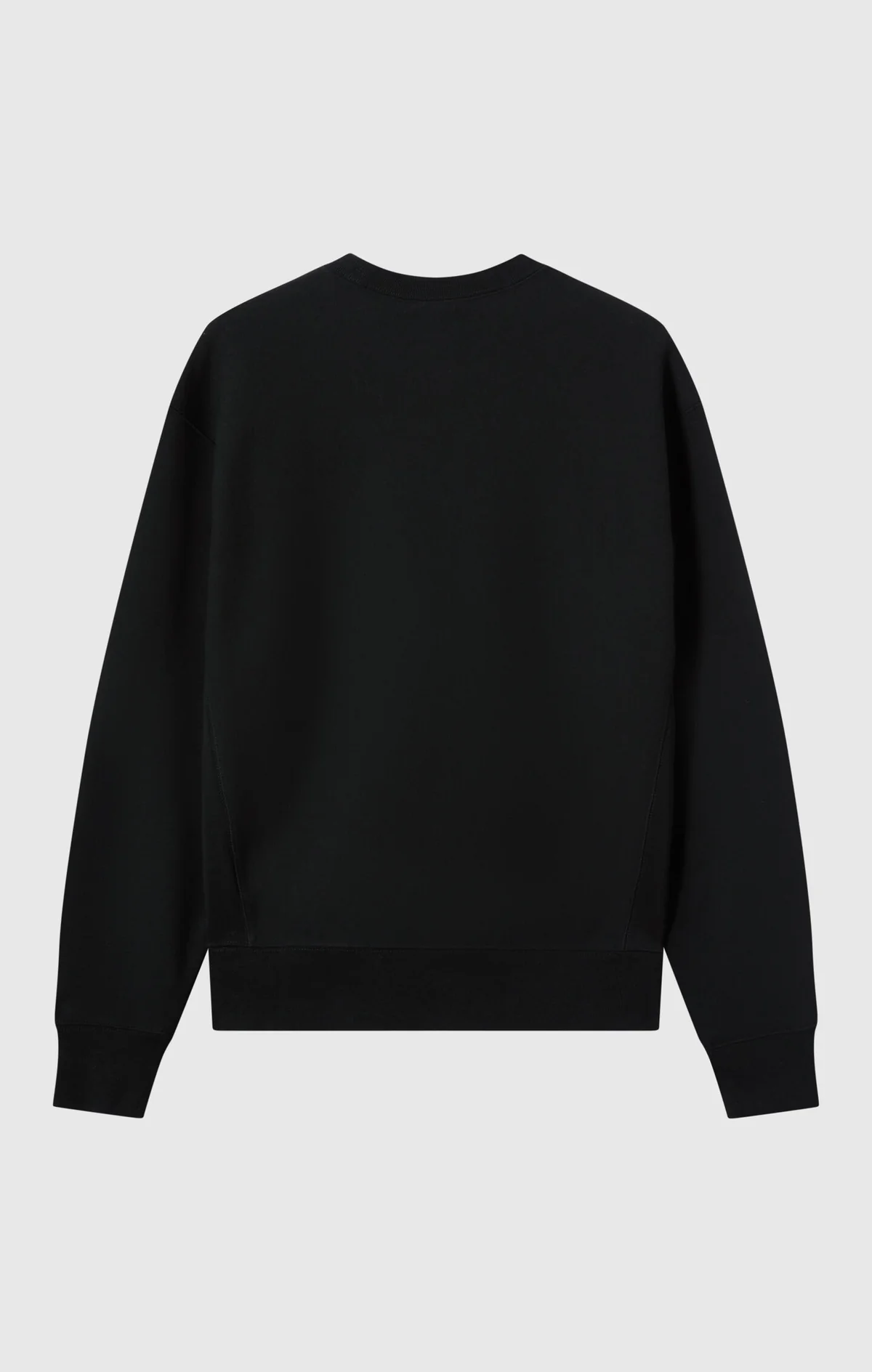 A heavyweight relaxed-fit black sweatshirt built with durable reverse weave cotton—shrink-resistant, soft, and street-ready season after season.