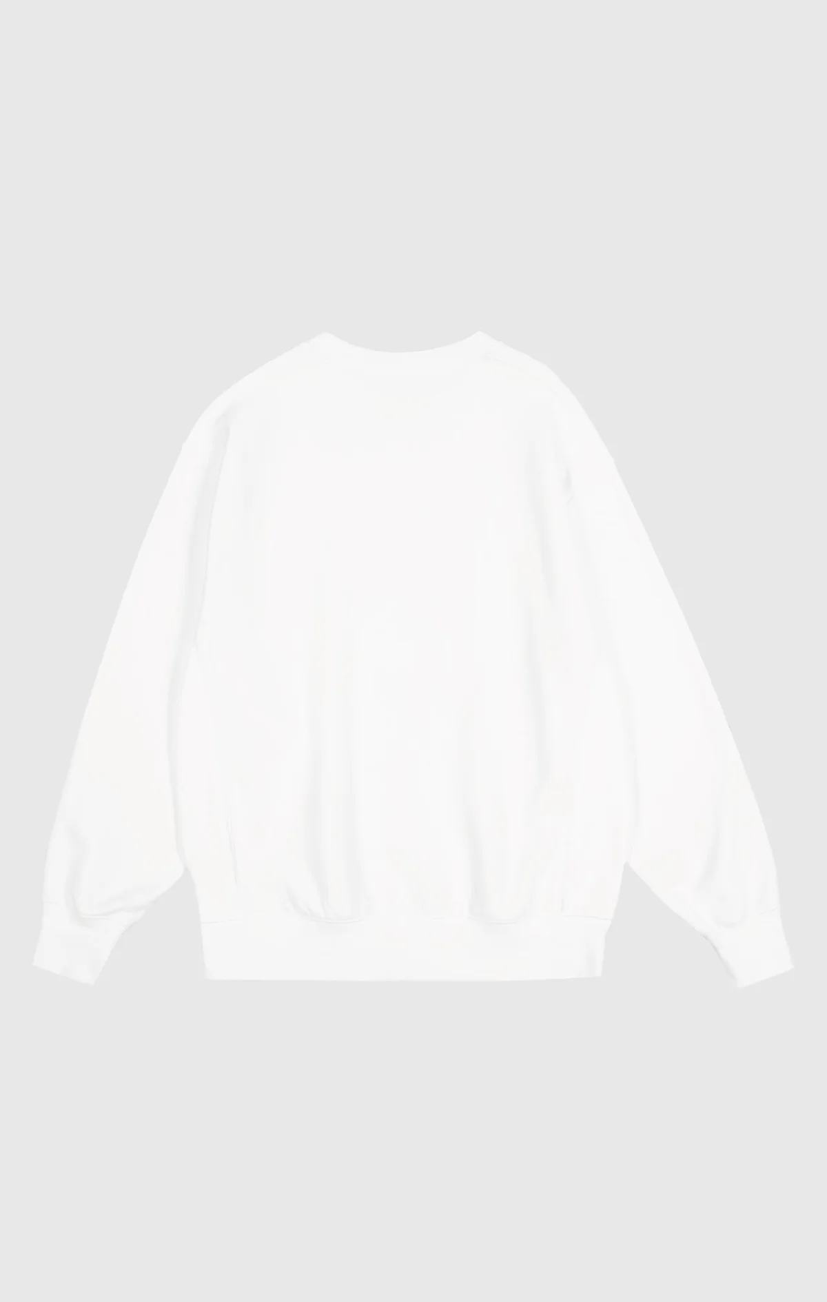 A crisp white relaxed-fit sweatshirt built with durable reverse weave cotton—soft, structured, and perfect for modern layering or solo wear.