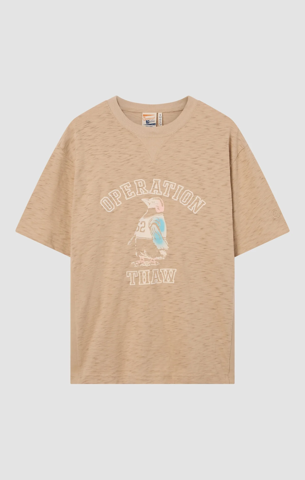 Cut from soft, washed cotton in an earthy brown hue, it offers a broken-in feel with effortless character. Whether you’re chasing sunsets or weekend fits, this tee adds a bold, nostalgic edge to your everyday uniform.