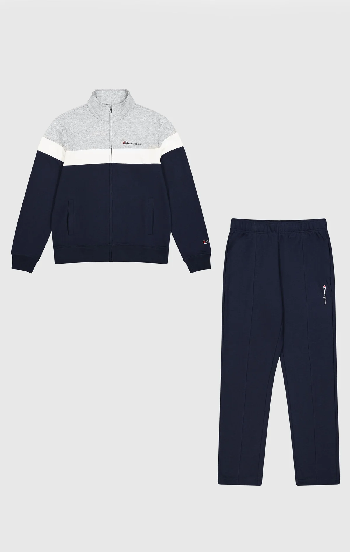 A tailored navy blue sweatsuit with a slim fit and zip-up hoodie. Sleek, versatile, and built for all-day comfort and modern streetwear style.